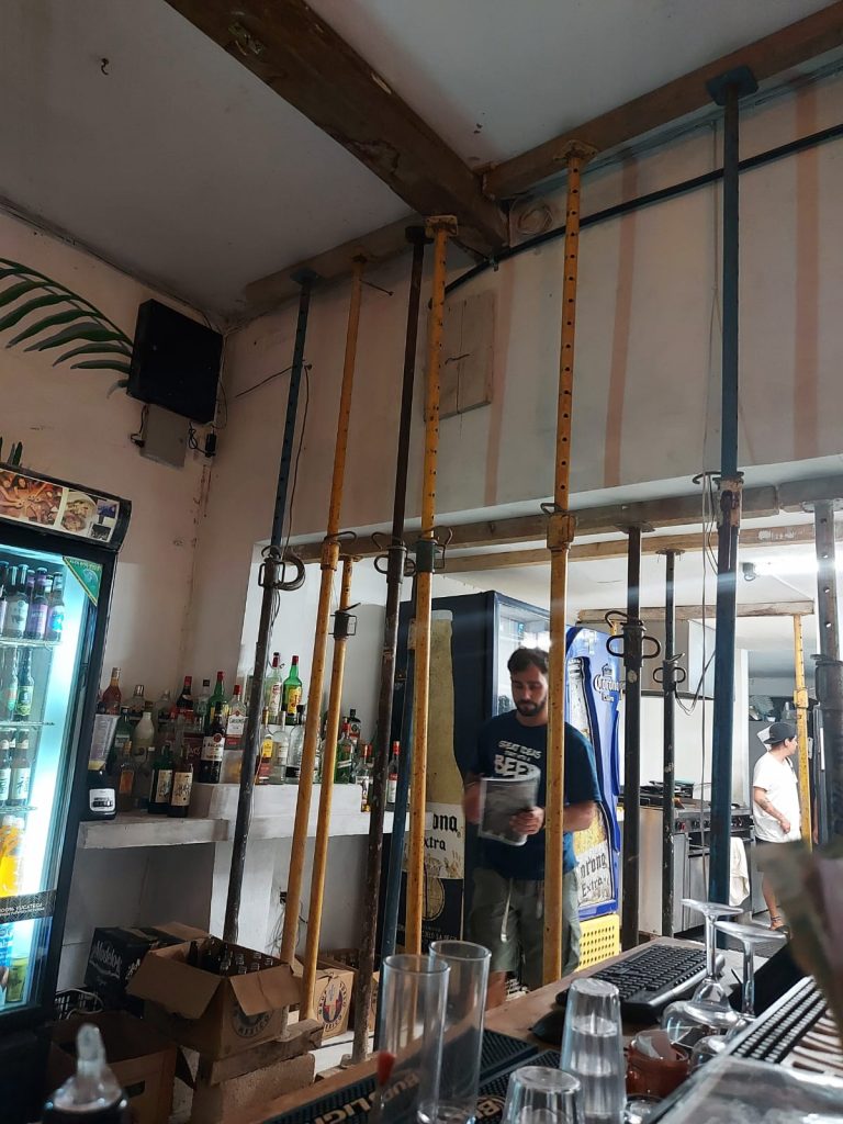 Oh I meant the price for drinks, it is much cheaper at our hostel, but yes also the fact the ceiling appears to be held up by scaffolding!