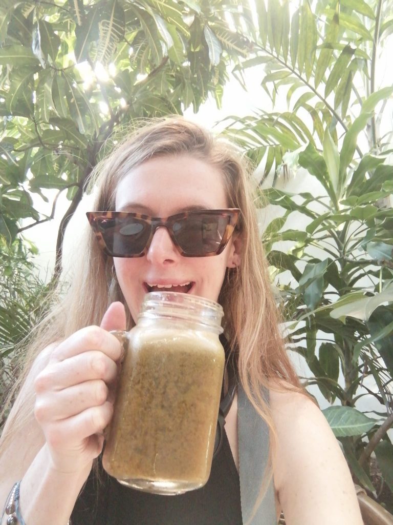 The outdoor seating had jungle vibes, which pushes the rating up to a 6/10 (it’s only low due to the lack of options for food really) – I guess this is more of the place to go for a healthy drink!