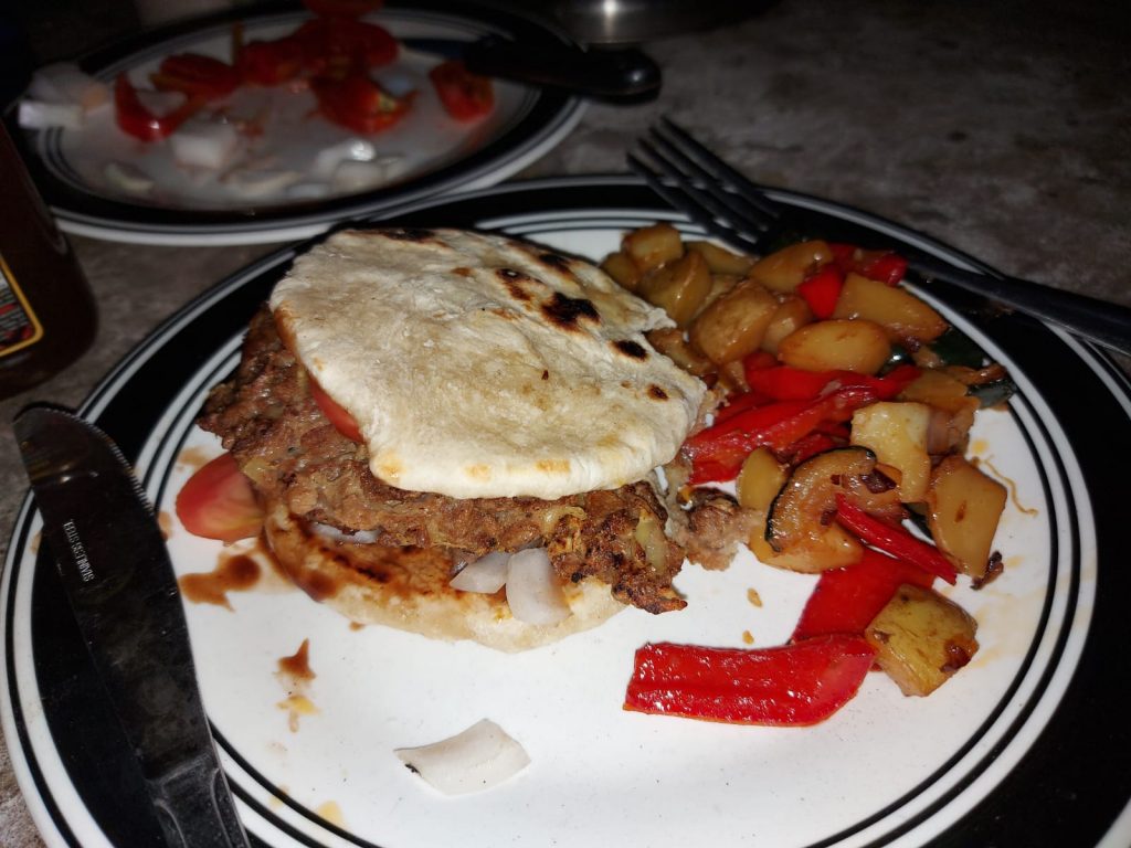 The sun was blazing down on us, so we headed back about 2.30pm. Discussing dinner for later. We made burgers out of a packet of soy, which needed flour, water and shredded potato to help them stick together. I made breads for buns and we slathered on the bbq sauce and garnished with onion and tomato, with a side of fried courgette, pepper and onions. IT WAS HEAVEN. I FELT SO AMAZING AFTER THAT MEAL.