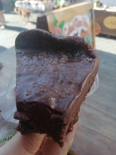 - Hollie had found a vegan place 5 minutes up the road so OF COURSE we had to go there. It was HEAVEN. I got a chocolate peanut flapjack thing and Hollie got a chocolatey fudge cake. It’s times like this we wish we were rich so we could buy everything.