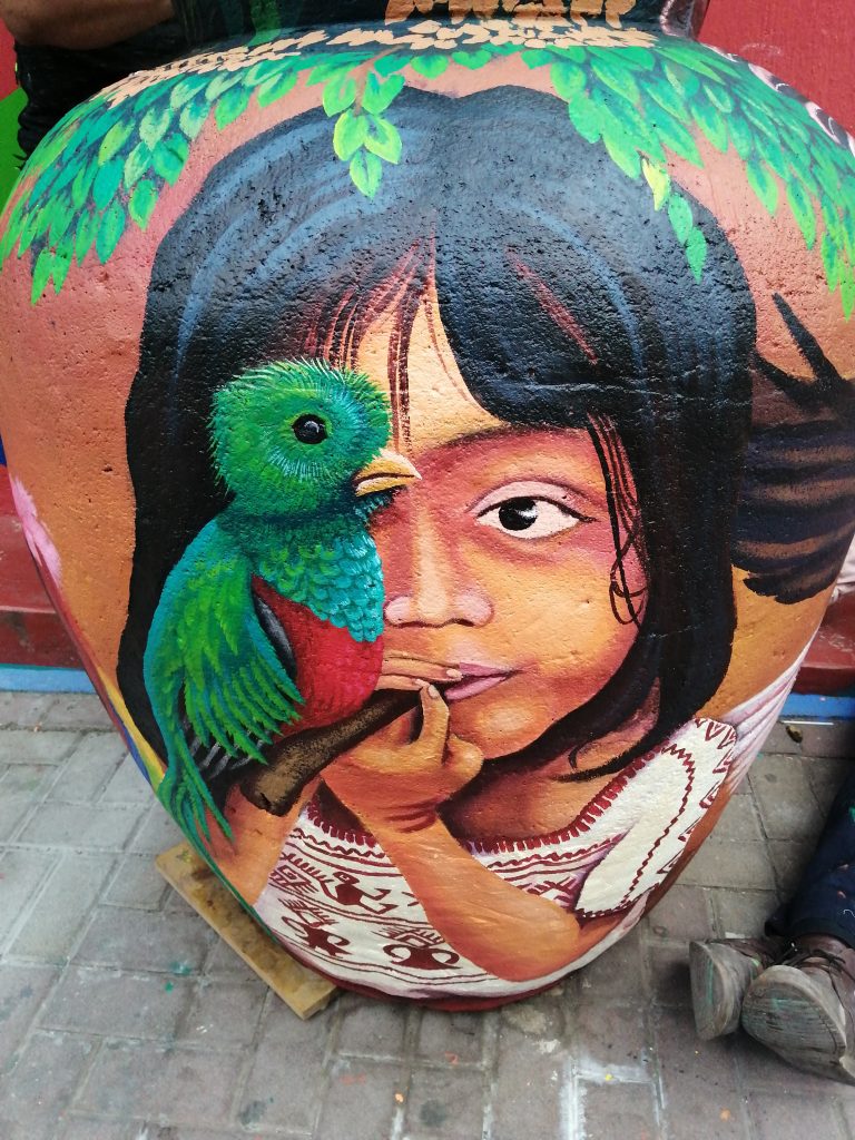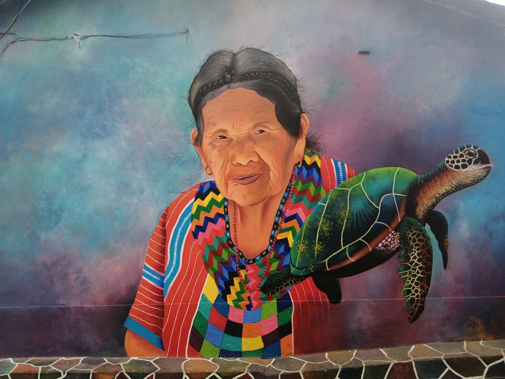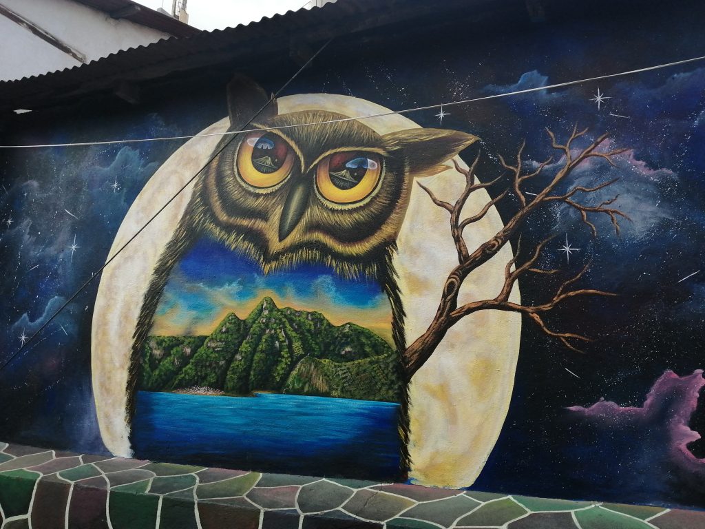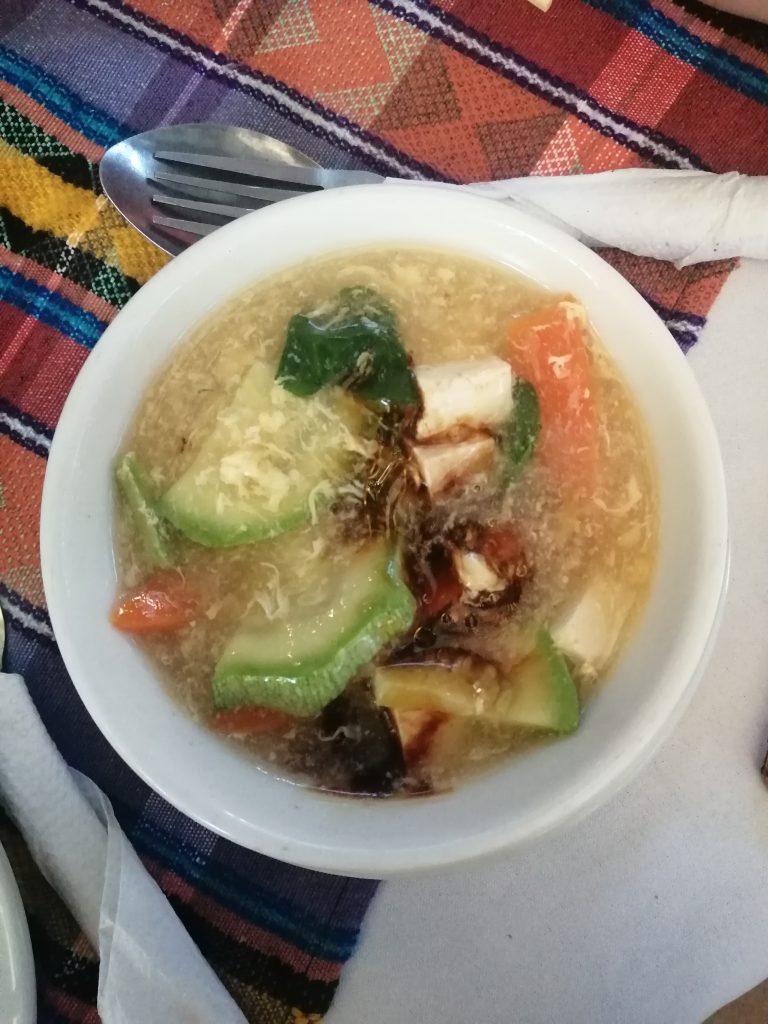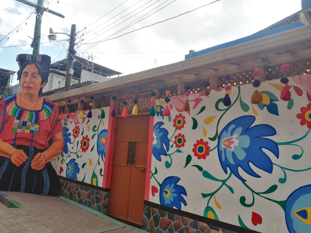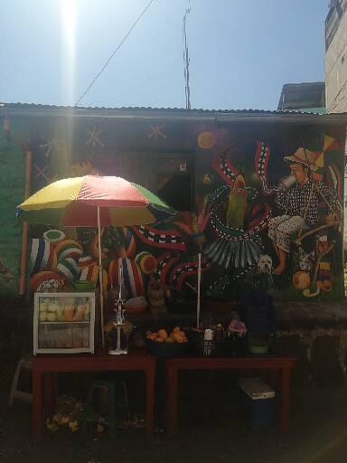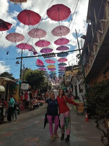- Today we decided to check out San Juan – we took a tuc tuc there and once we arrived we weren’t really sure where to go or what there was to do. We bought some mango and took in the beautiful street art as we made our way to what I assume is the main bit. It was under an archway of umbrellas and hats and we met a lady who asked if it was all like this ” a Mayan Disneyland”, to which we said yes, and she said “It’s lovely but it’s fuc*ing weird”. We stopped and had a huge smoothie over looking the lake for the last night and then had a yummy wrap, that felt like I’d eaten a proper greasy kebab. Great views from the restaurant though.