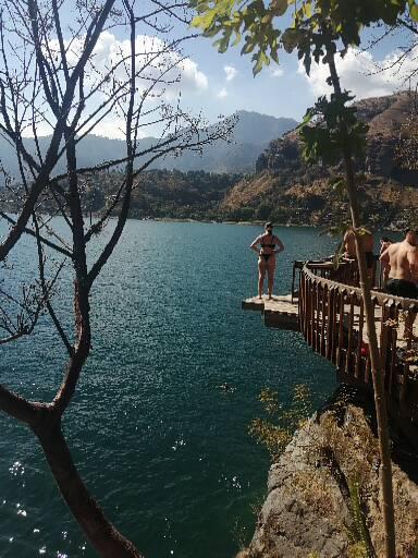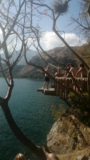 - Then we left Sofia and Jamie to get the boat to San Marcus. Upon arrival we walked around the cliffs to the jumping point. As soon as I saw how high it was (about 12m), I instantly said that I was not doing it. I was put off by Hollie hurting her coccyx before, and also I’m terrible with heights and jumping. It was enough of a thrill just watching people jump, I was literally shrieking and gasping at each jumper – that was enough adrenaline for me. I did try and jump off a rock closer to the lake, but still couldn’t do it. Consequently later that evening I got recognised by 2 people as ‘you’re the girl that didn’t jump’.