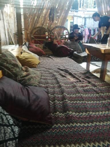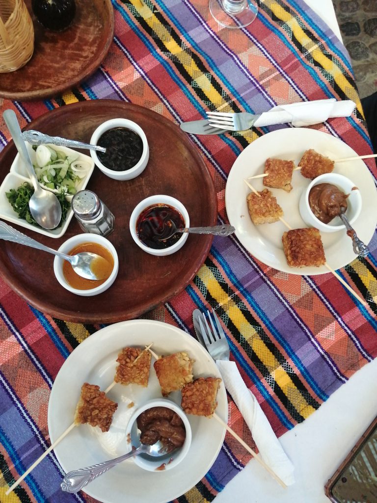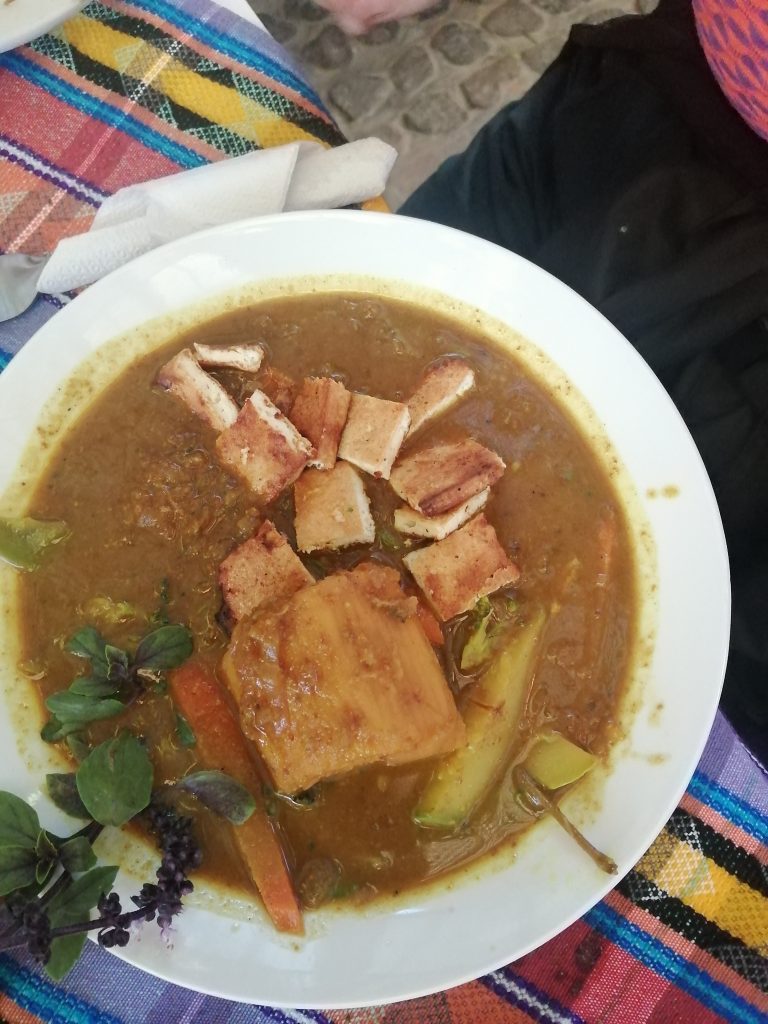 - After the adreneline junkies had had enough, we strolled into San Pedro which entailed walking through a series of alleys to get into a larger alley filled with shops and incense. It was like being at a festival, everything was so hippy and we found the perfect spot to eat inside a large canopy with floor cushions – one of my favourite things is indoor furniture outdoors, and eating on soft furnishings.