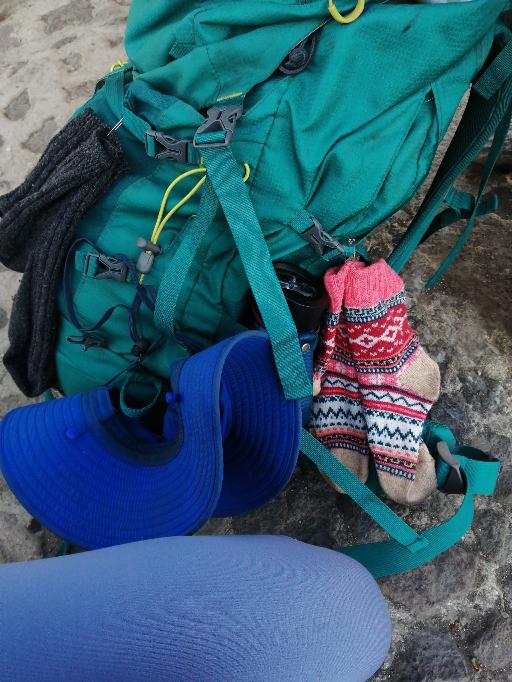 So as usual Hollie and I had the biggest bags, and we sat on the bus wondering how everyone else was going to be warm and stay hydrated with their tiny bags. If we didn’t already look questionable with such large rucksacks, my socks hadn’t dried in time, so I had them safety pinned to the straps of my bag!