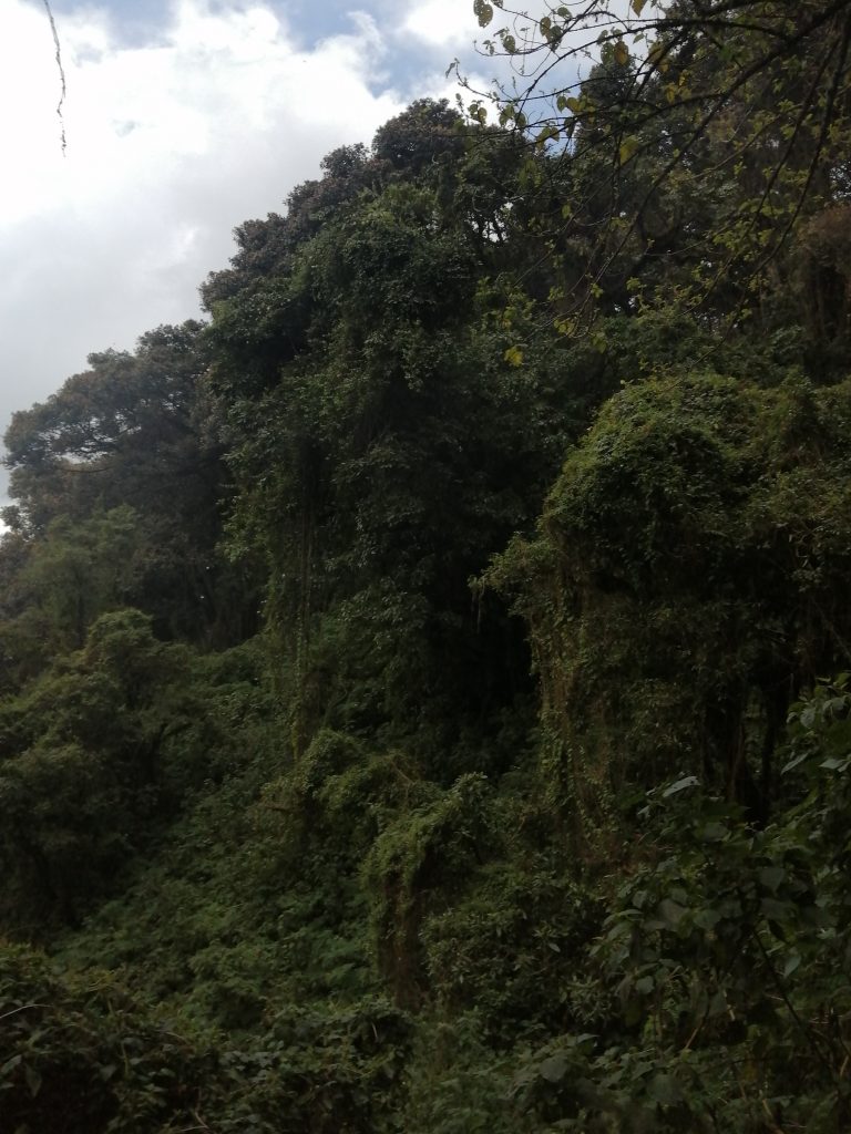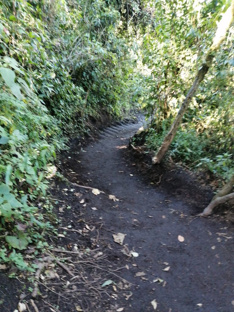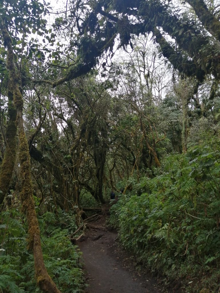 As we departed for the next round of wrestling with our lungs and calves, we were still behind and now joined by a guy from Switzerland who seemed to sugar coat how long everything would take. We were fully in the woods now, and could no longer see land behind the trees as we were amongst the clouds. The Swiss guy said just another 20 minutes and we will be at lunch …. 40 minutes later we got to the rest point for lunch. I enjoyed mine whilst Hollie lay on the floor and put a blanket over herself to rest. We had thought it would be an hour for lunch, but it seemed much shorter. We were back on our feet, and at this point I had to exchange my shorts for leggings as it was getting nippy.