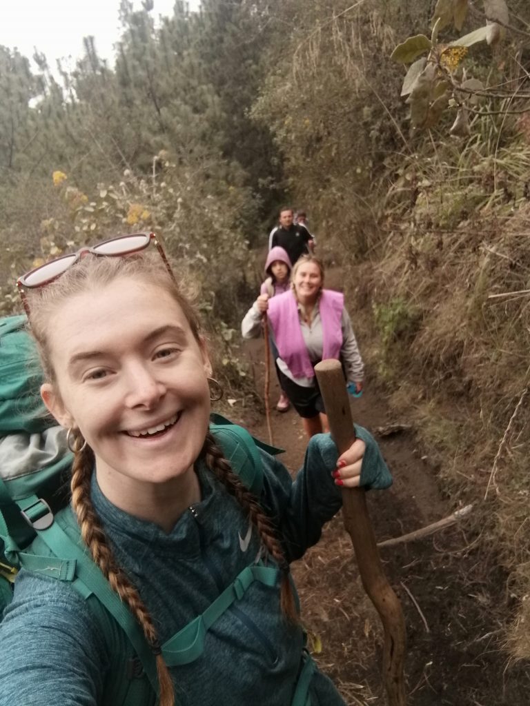 We took our 65L bags because our small rucksacks were too small. Whenever you talk to anyone about the hike, the common theme is the cold, so naturally I packed 2 pairs of leggings, 1 pair of trousers, a t-shirt, a long sleeve gym top, a thick jacket, a jumper, a scarf and a neck warmer. We then got given a big coat to pack, gloves and a hat. This hat was not flattering on me, so there will be minimal pictures of me in this blog, because I will get mistaken for someone who is terminally ill.