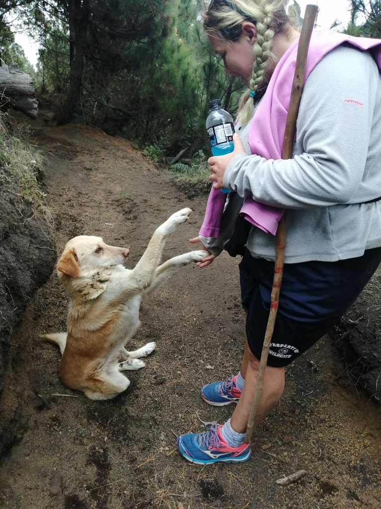 We were told that it would be hard for an hour and then easier for an hour, and then we would be there! There were some dogs along the way, who were very clever as one pointed to bottle of Powerade bottle to tell us that he was thirsty, so Hollie cupped water in her hand for the dogs. They must get a lot of food along the way, but there isn’t any water for them in sight!