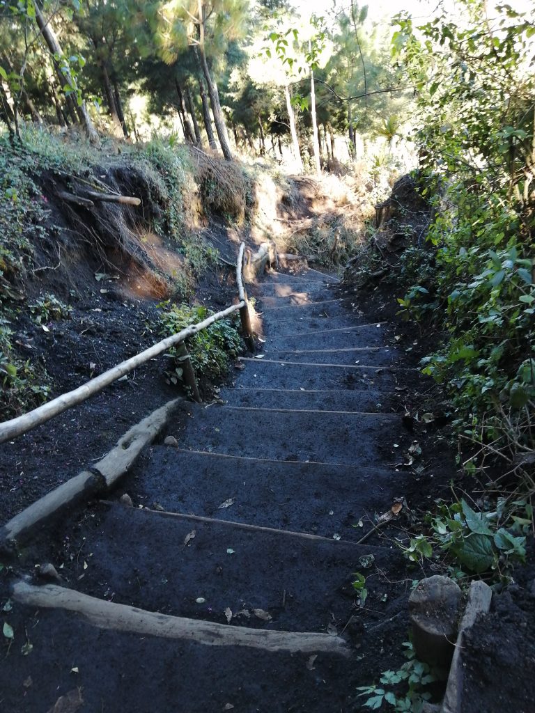 The first half an hour felt like it should have been an hour. We were told we would get breaks every 30 minutes, so when we FINALLY finished the first small stretch, we sat down. I ate a jam sandwich and tried to drink some water just to lessen the load! There was also a cabin selling crepes, juices, fries, burgers etc! The break was short lived and off we went for the final push of supposedly the hardest bit. We were met with a vertical set of deep steps. I couldn’t quite believe that I felt spritely, saying ‘hola’ to every passer by, and had excitement and happiness bubbling away inside me to spur me on (how can I get these feelings every day?!).