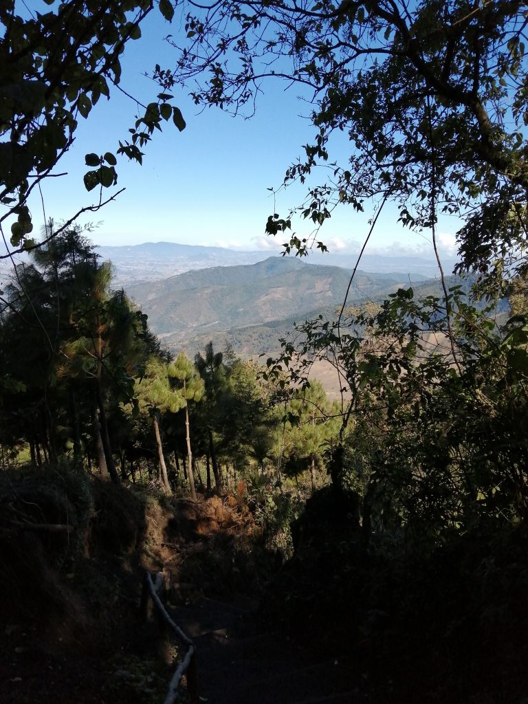 Thankfully the guide had warned us that the first hour was the hardest. Great (not sarcastic), this is much better than the last hour being the hardest. Stick in hand that I had rented for 5Q, we set off up a steep dusty path. I should mention that Hollie woke up feeling sick at 4am, and wasn’t feeling on top form. Our group made good speed as we lagged behind. A guide offered Hollie a porter, and at first she declined, and then we discussed that it would make it easier so it would be worth it. We put our money together to pay the 250Q as decided by the weight of the bag. When the guy took it, he sounded shocked, and then as he put the bag on his front (he already had a bag on his back) Hollie said that she felt terrible as she didn’t realise he would be carrying it.