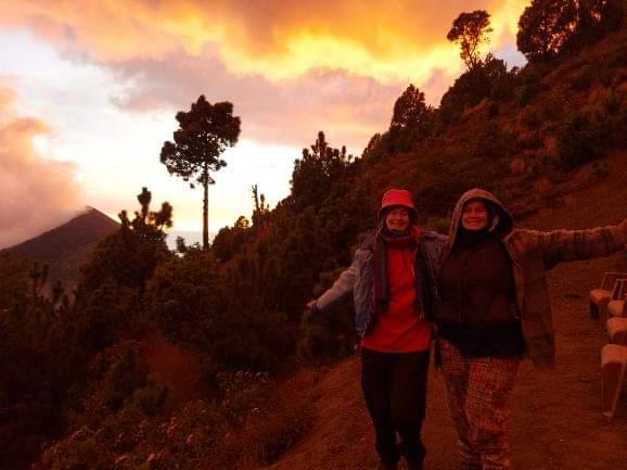 Hollie wanted to do the hike independently to save money and over fears of being slow. This was not something that I was up for, so we compromised and tried to find the cheapest option. Most people we had spoken to had booked through Tropicana hostel for $60-$100 (prices vary as you have to pay to rent items such as coat, gloves, hat etc). Tropicana has cabins at the base point which I guess is a great selling point as EVERYONE says how cold it is. Hollie found us a tour with Alama Maya Hostel for 400Q and that came with lunch, dinner and breakfast the next day, a coat, gloves and hat. We then had to pay 100Q on the day for the entry point, and some people paid 200Q to climb closer to Feugo. We weren’t aware of this, so did not have enough cash, but also with promises of seeing lava from the comfort of base camp, this was good enough for us.