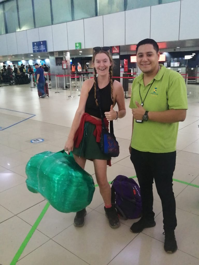 I tried to book our bus from Costa Rica to Panama, as you have to show proof of exiting the country when you arrive, but for some reason the website wouldn’t load. So I needed to call on Hollie to help me and book the tickets. I tried to check in for my flight, but was asked for proof of exit, so pestered Hollie to help me in doing this quickly, and thankfully I had enough time to get this booked and wasn’t in a rush! So after my 8 Hours of waiting for a 1.5 hour flight where I got upgraded to a premium seat with lots of leg room, I arrived in Costa Rica! I waited in a long queue to go through security again, and used this time to unwrap the clingfilm on my bag. It was like unwrapping the worst Christmas present ever.