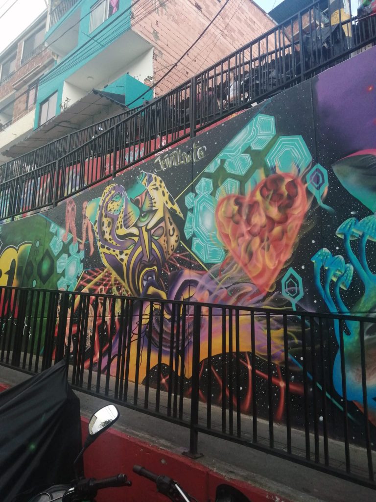 I have to say that I’m not really a fan of a tour.. I find it hard to focus on people talking at me, reeling off information that I’m supposed to remember without writing it down to retain it. But this was the best walking tour ever!! We learnt about the history of Communa 13, and about the Murals. They get redone every 5 years, but some end up staying longer because people like them so much.