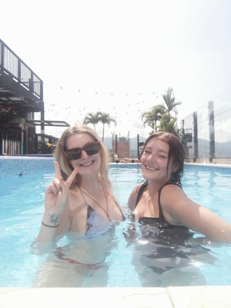 I said hello to Amie and she informed me that she’d left her phone in the taxi! (By some miracle she ended up getting it back!!!!) I sat and had a rum and lemonade for Hollie’s birthday breakfast and then Amie and Hollie spent the day together. So I had no choice but to buy a bottle of rum and headed to Ronja’s hostel.. The Masaya. It was a huge hostel. It even had an escape room. I poured us drinks and we swam in the amazing infinity pool. It had views for days. I just love the feeling of waking up still drunk and carrying on drinking. This doesn’t make me an alcoholic BTW. It makes me an opportunist.