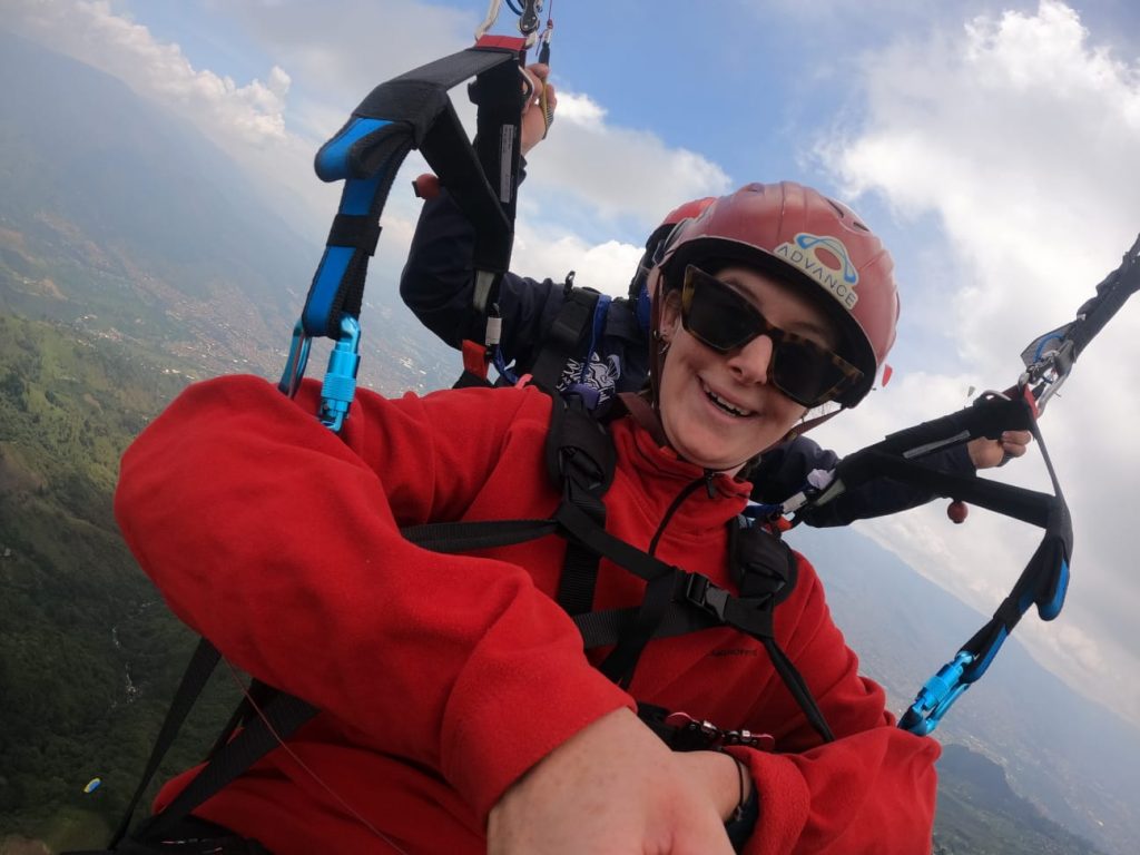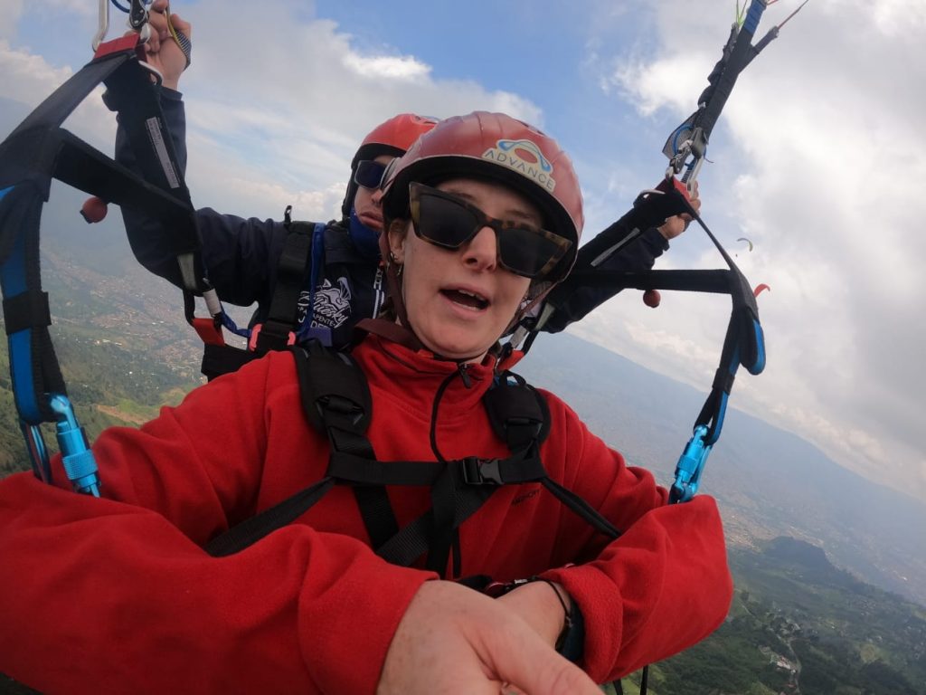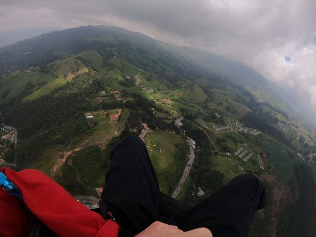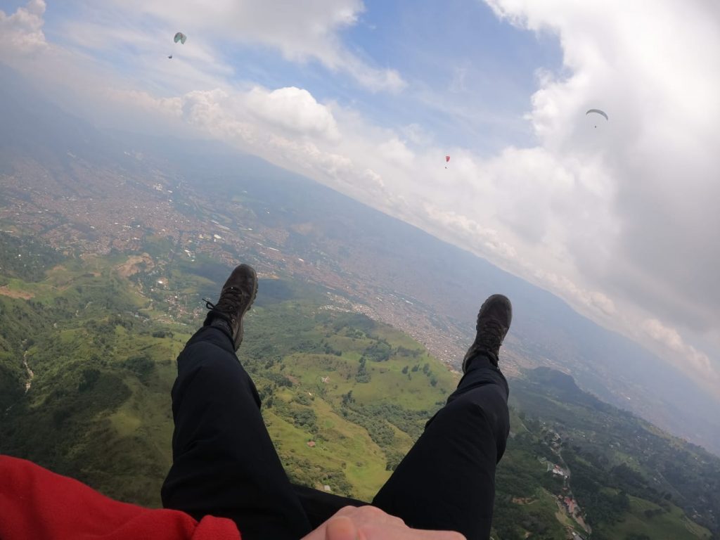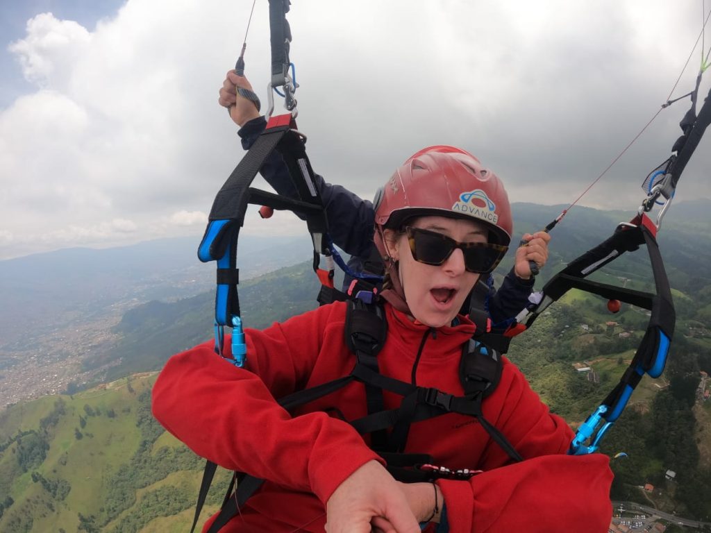 This was the part that I was worried about… But the guy was so good and I got to sit back and relax…letting out the occasional woooo, and woahhhh. It was such a crazy experience, gradually spiralling higher and higher into the sky. Seeing the plush greenery below me, and the many many houses of Medellin. I was surprised at how calm I was about doing this, but I loved it!!!