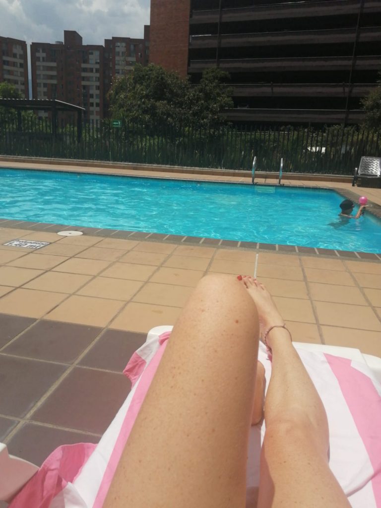 The next day we finally got our pool day, but not for long as it became cloudy!!! We had to wear these silly swimming caps also – I mean how much hair can get in a drain, but we followed the rules anyway…!