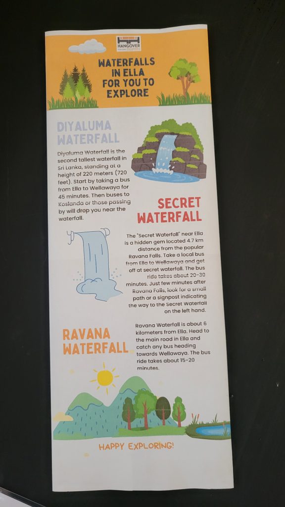 I decided to get on a bus to see the 2nd tallest waterfall in Sri Lanka – Diyaluma. It was a long windy bus, and I attempted to write my blog and started to feel rather sick. I pressed my thumbs into my wrist in replacement for travel sickness bands, and breathed in and out. I wasn’t sick which was the main thing.