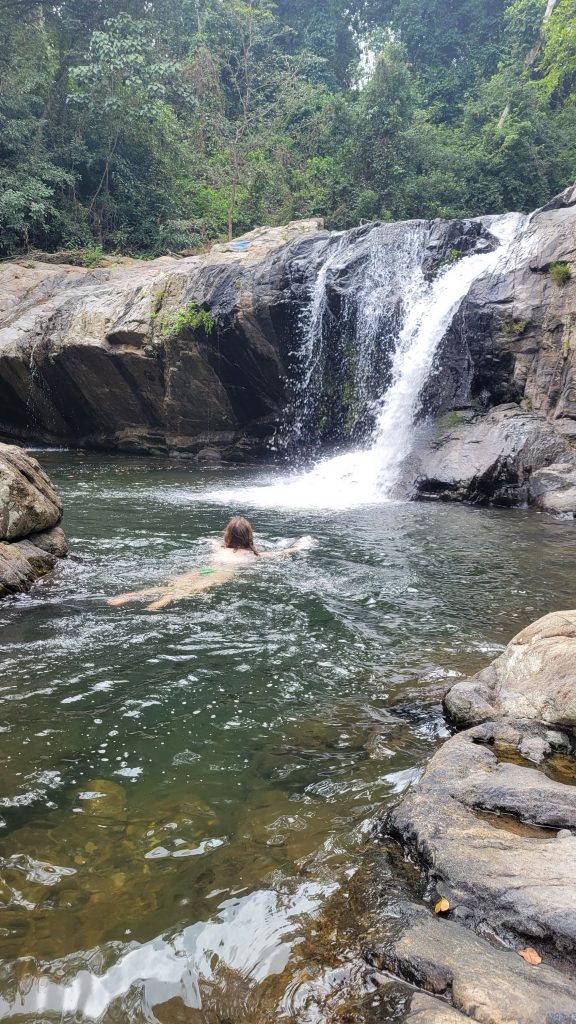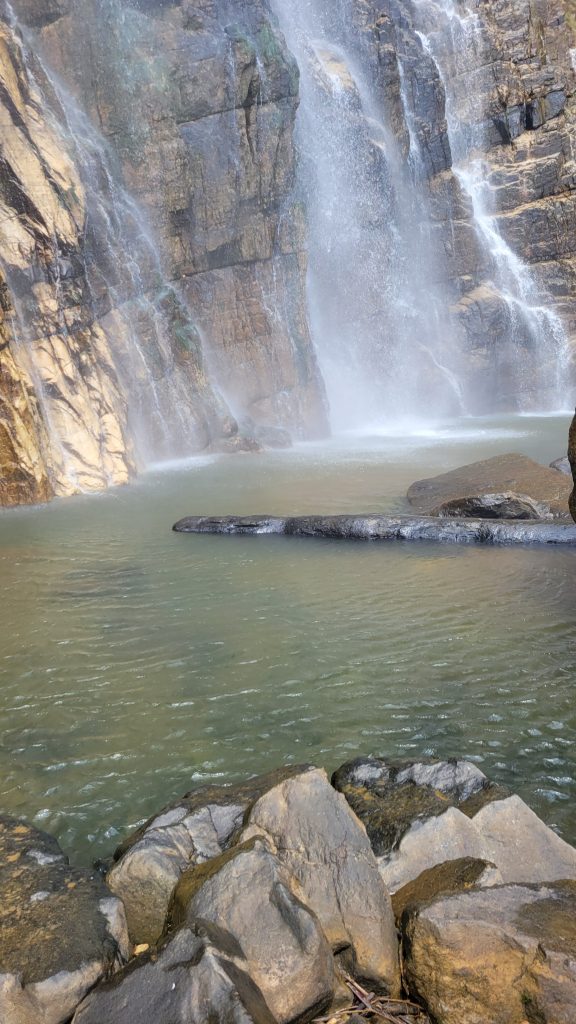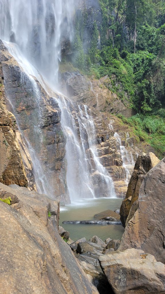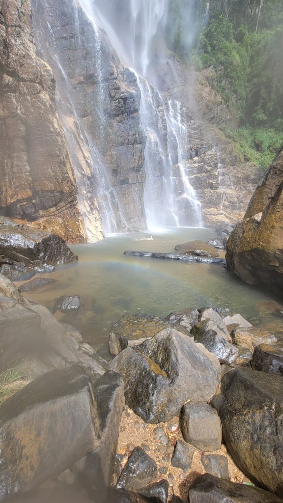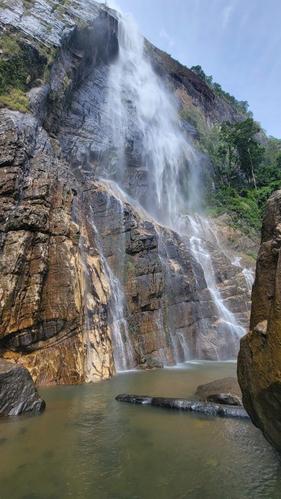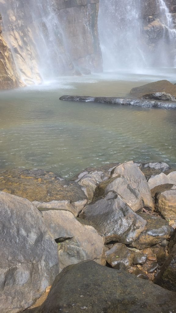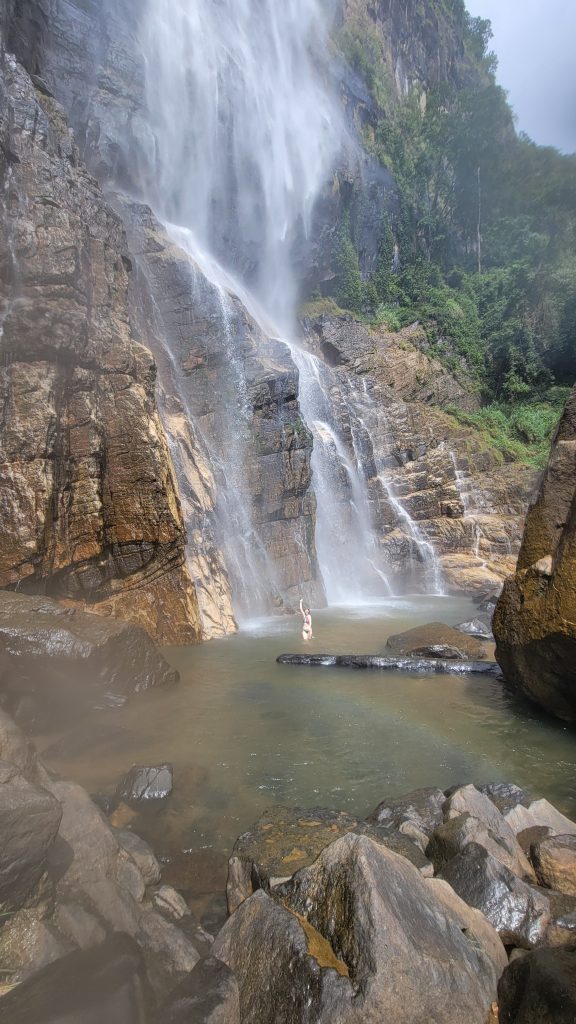 I floated around for a while and then got out. I looked at the pictures and he’d done an okay job (my phone was getting wet and so was he from the spray). He said about going back in, so I decided to do this, and asked him to capture the true height of the fall. It’s the 2nd tallest in Sri Lanka and needed to be seen in all it’s glory.